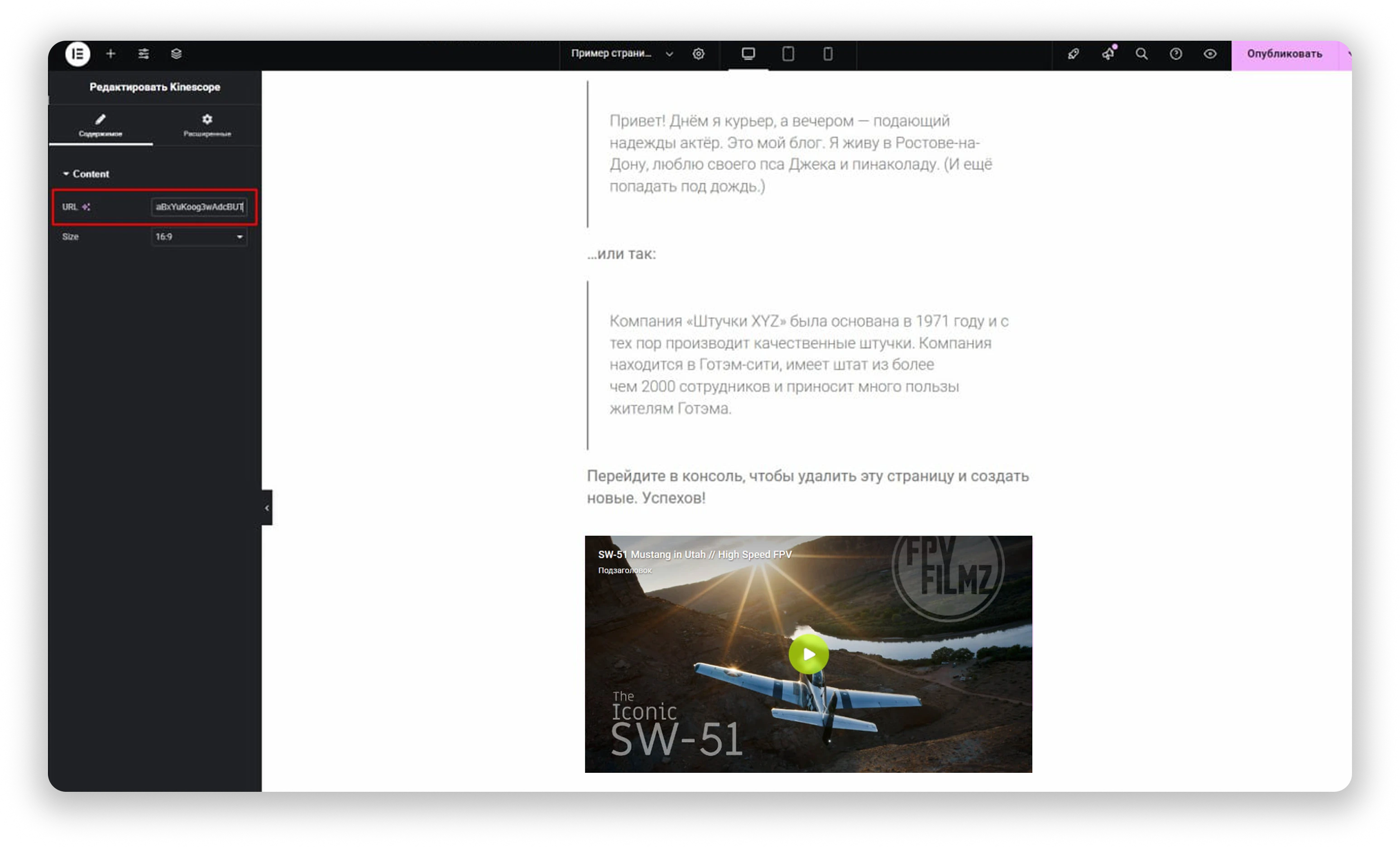 Вставьте URL видео Kinescope в редактор WordPress — плеер появится автоматически: